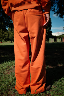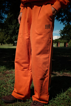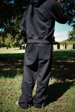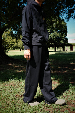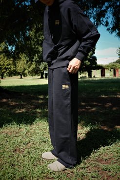 3連ロゴ刺繍にワイドストレートなシルエットでパーカー同様肉厚で