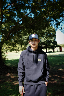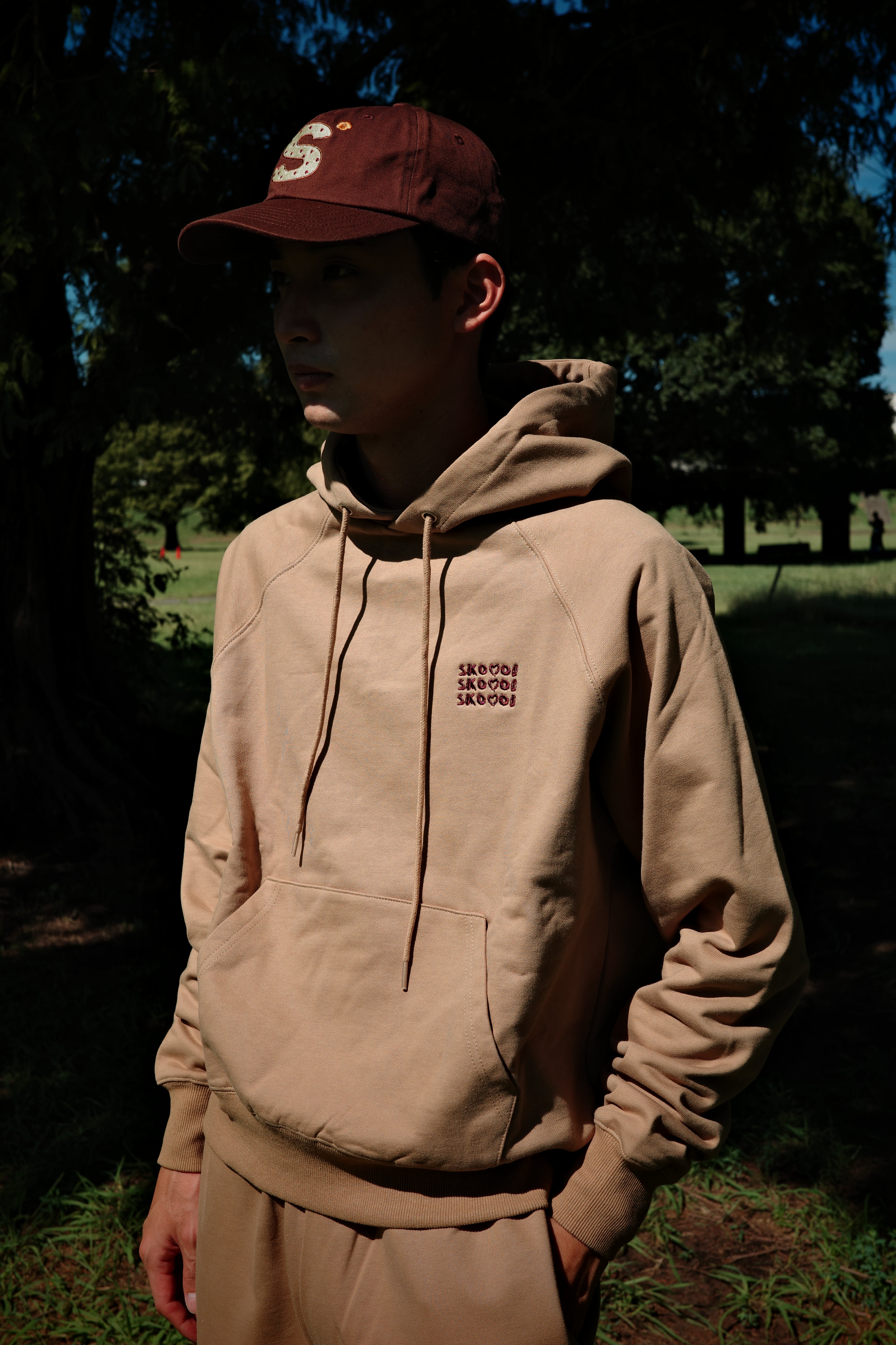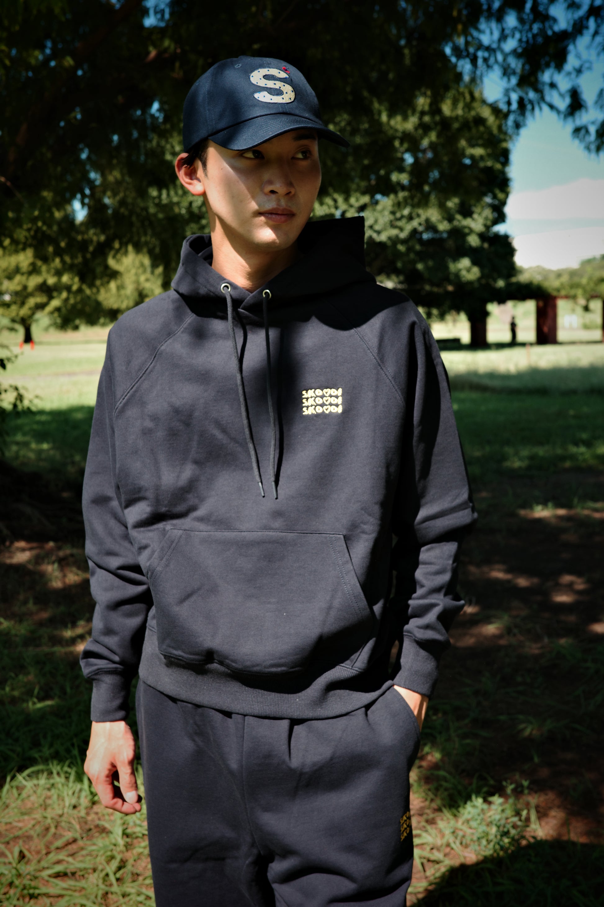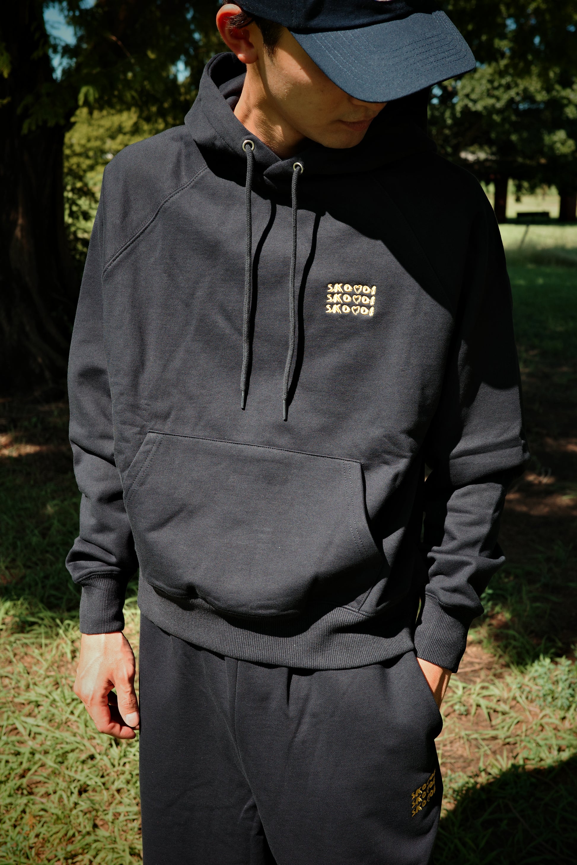 3連ロゴ刺繍を施した着丈短めのシンプルなロゴパーカー。