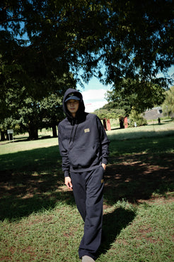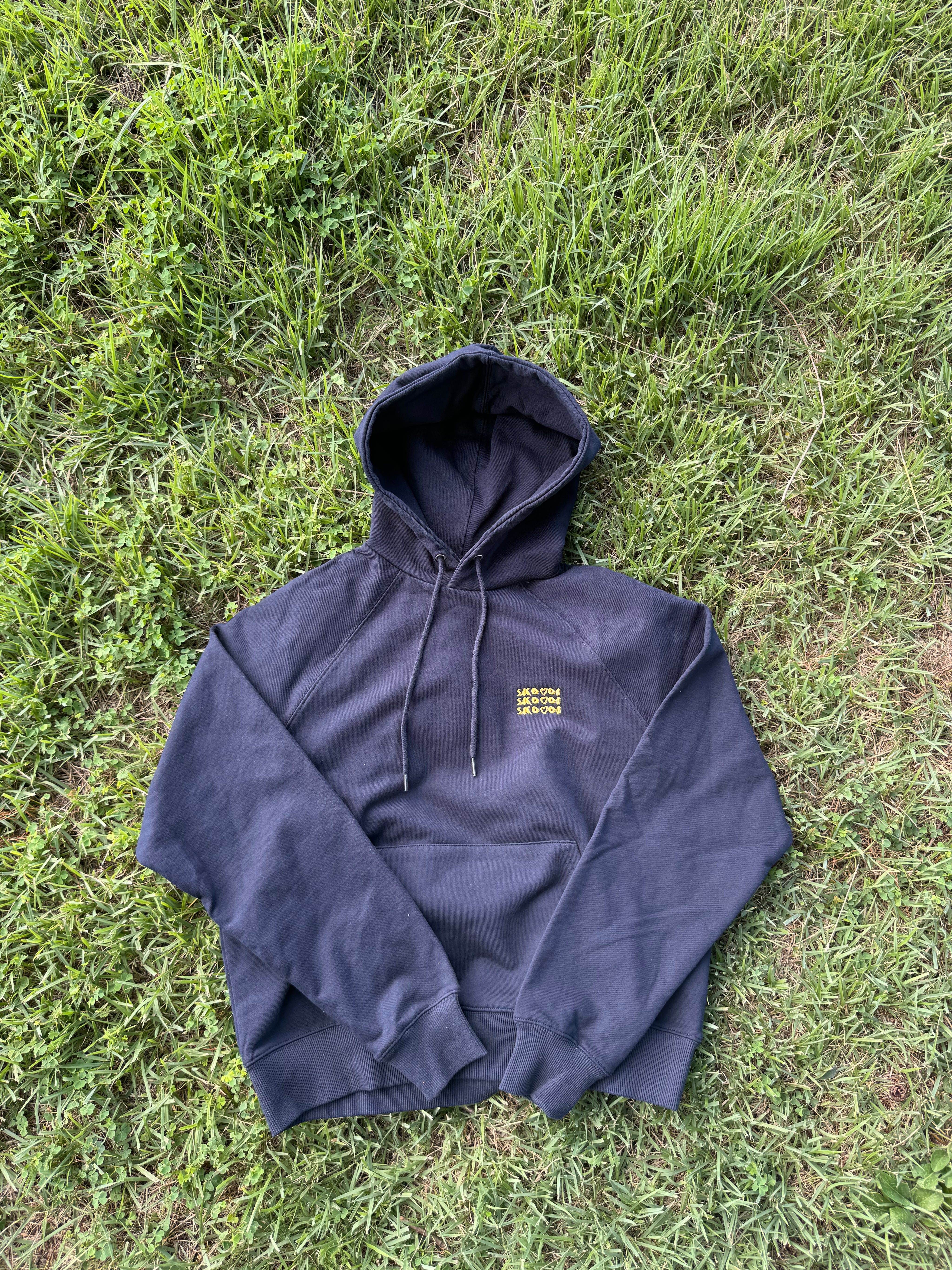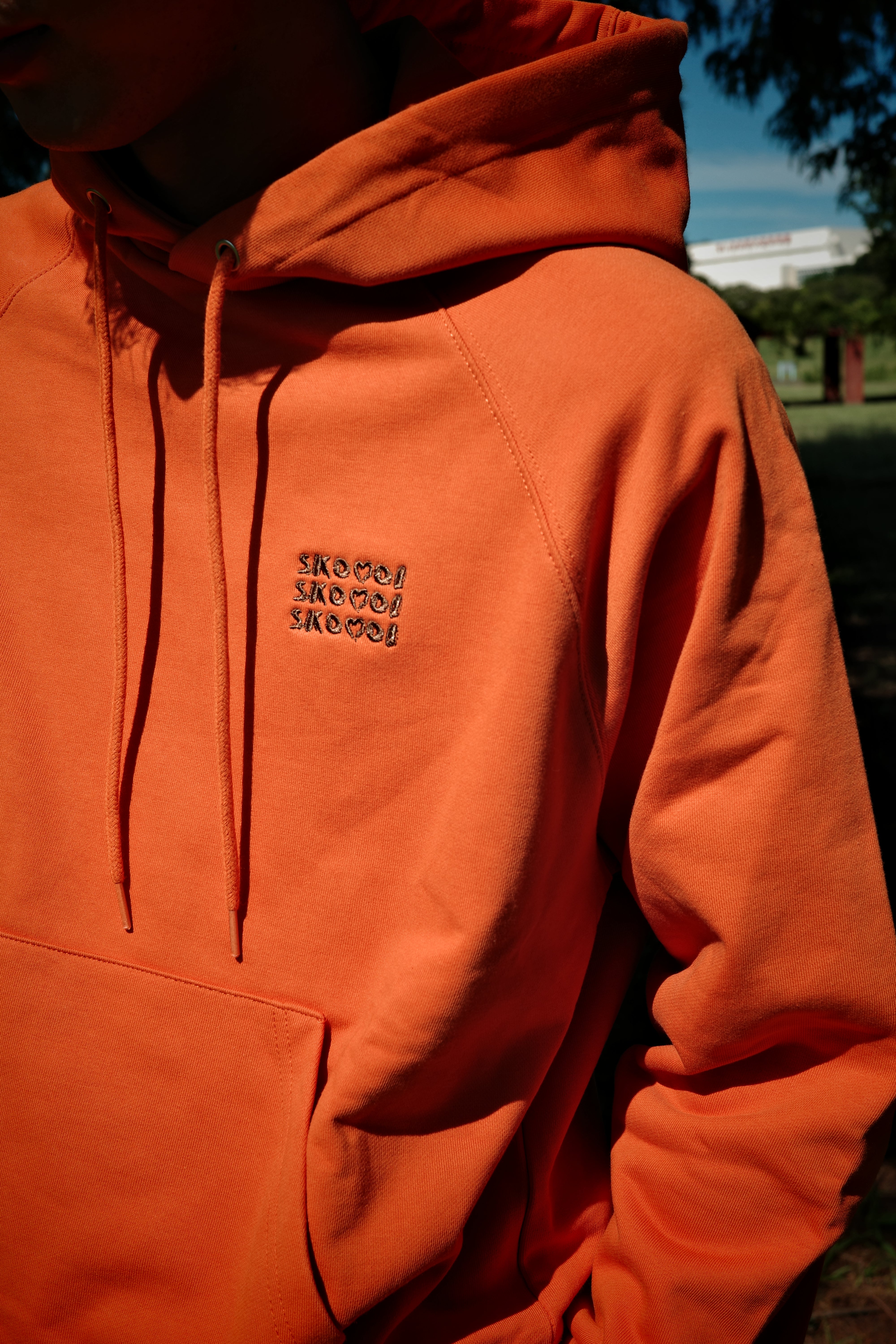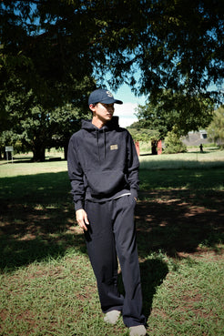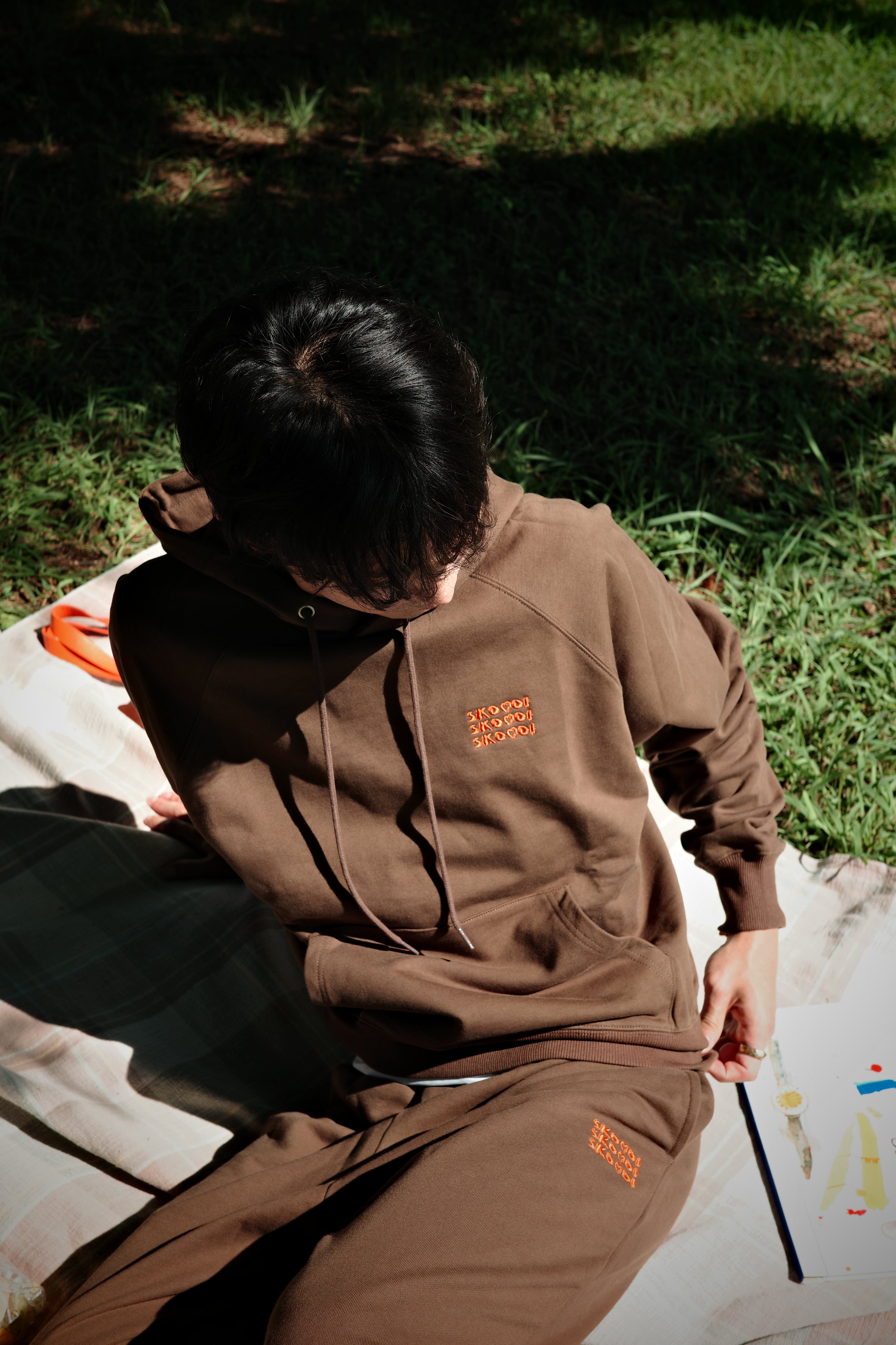 3連ロゴ刺繍を施した着丈短めのシンプルなロゴパーカー。