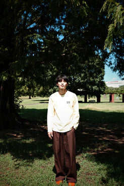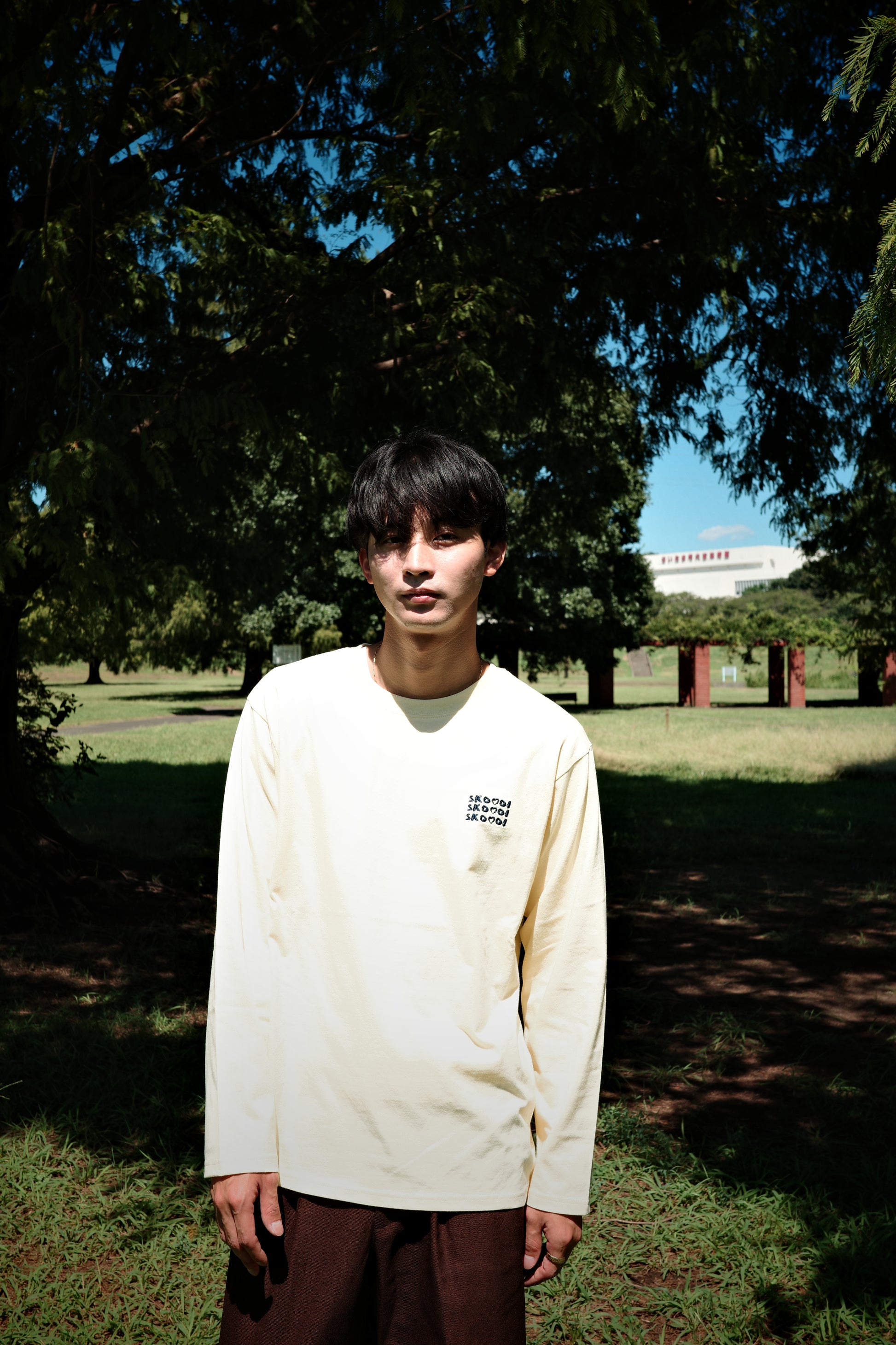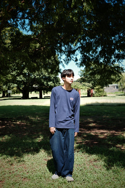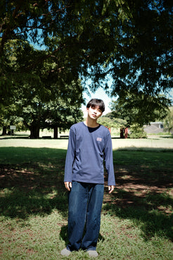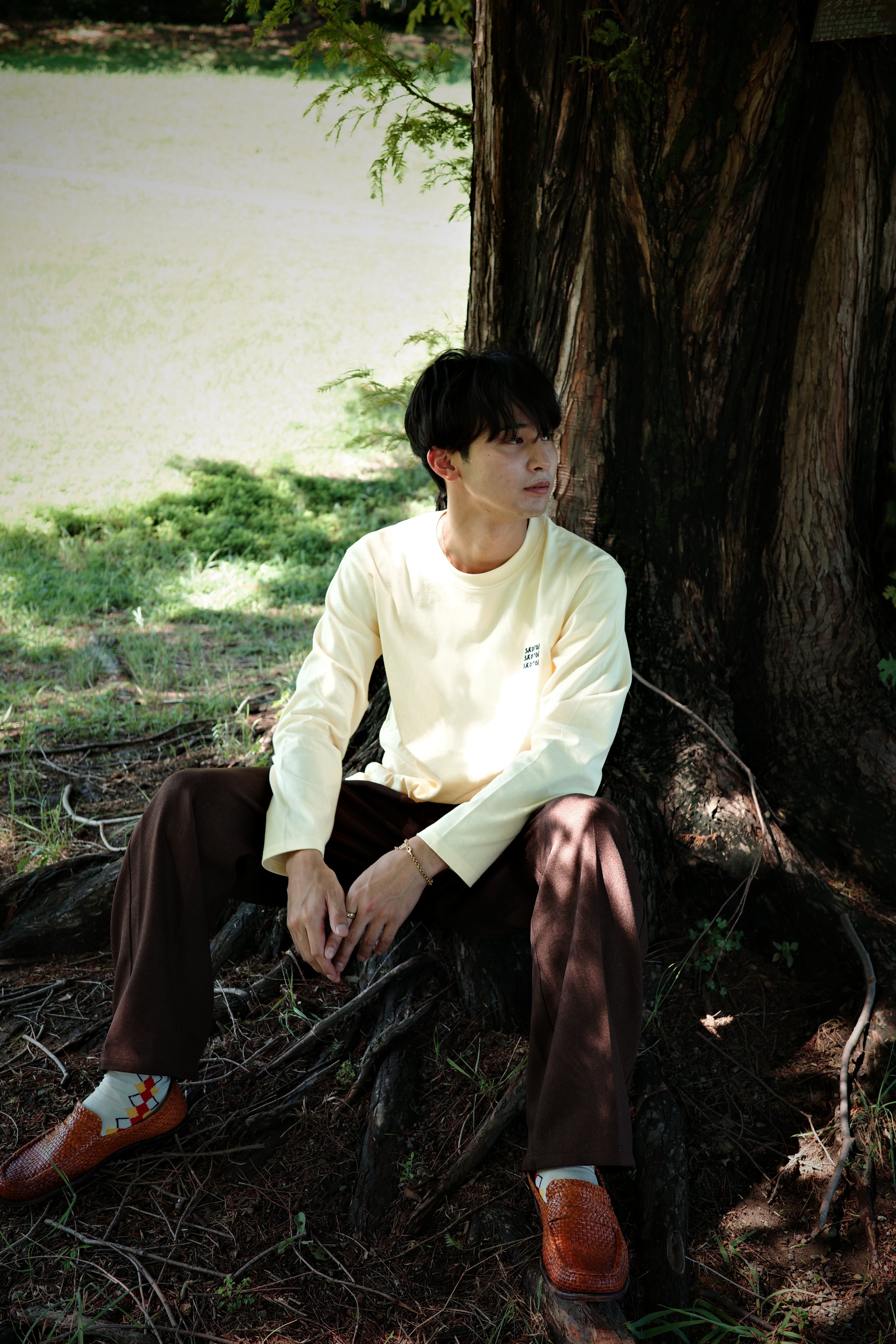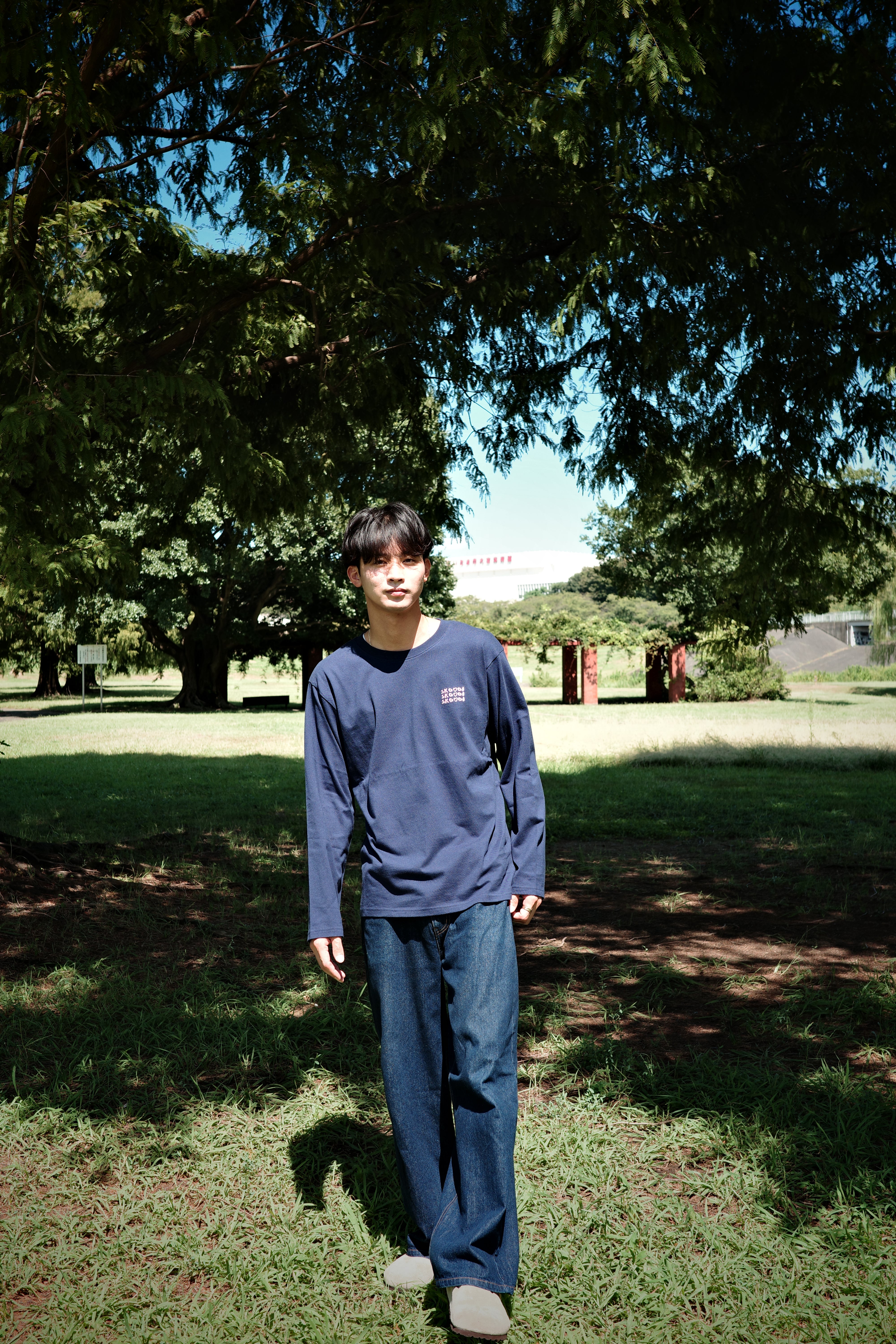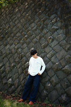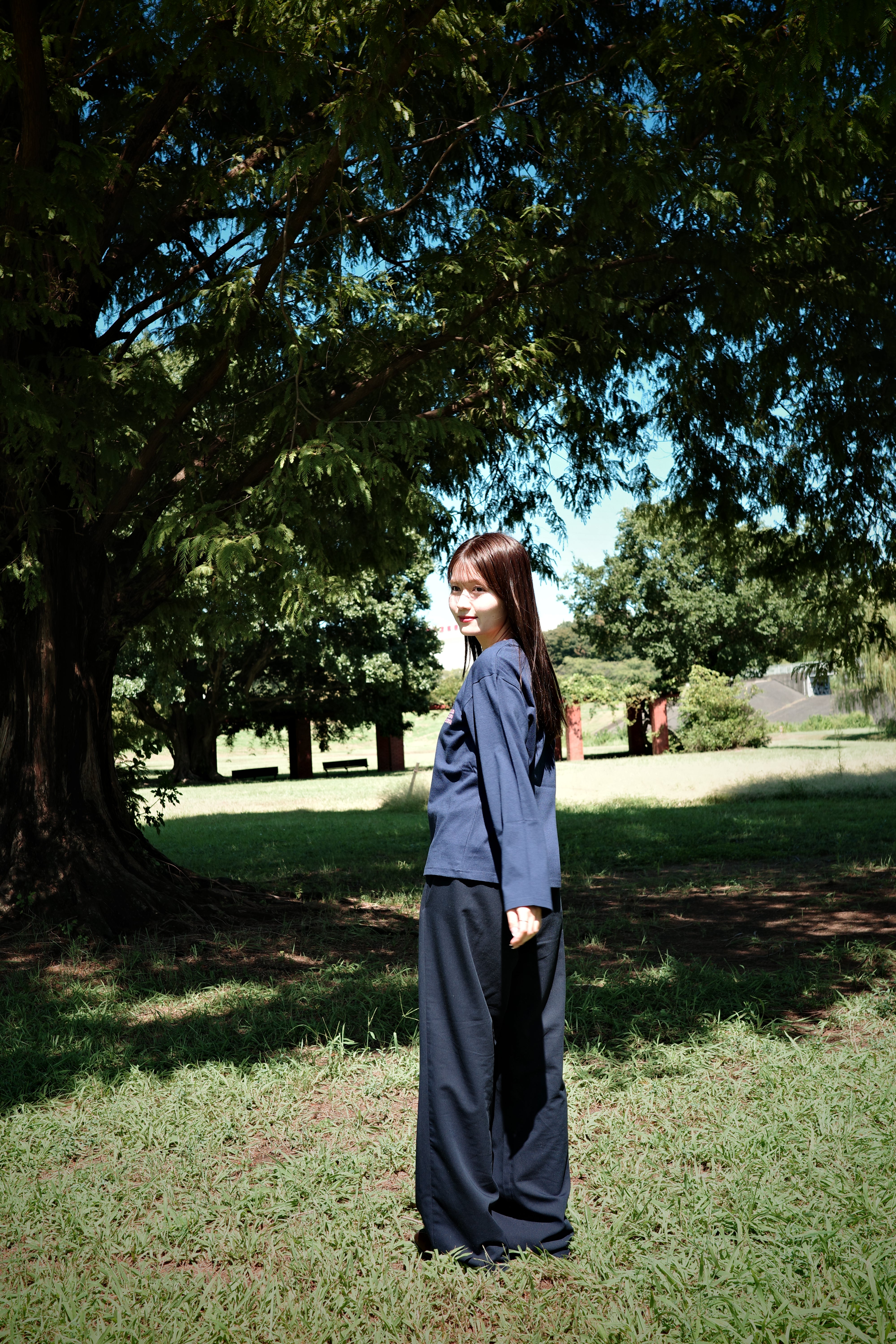 さらりとした質感で袖口のリブを無くすことで綺麗な落ち感が出る仕様になっている。