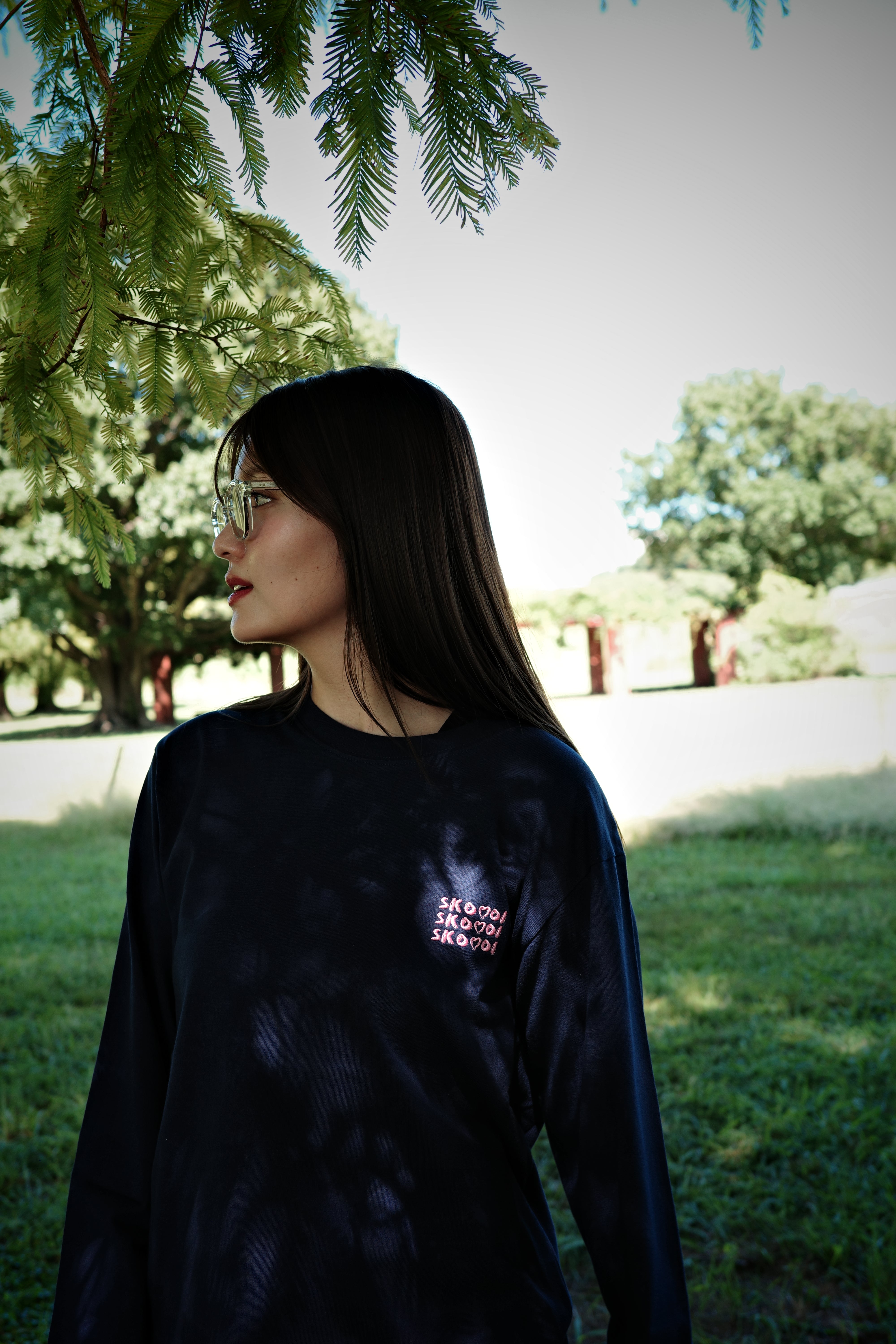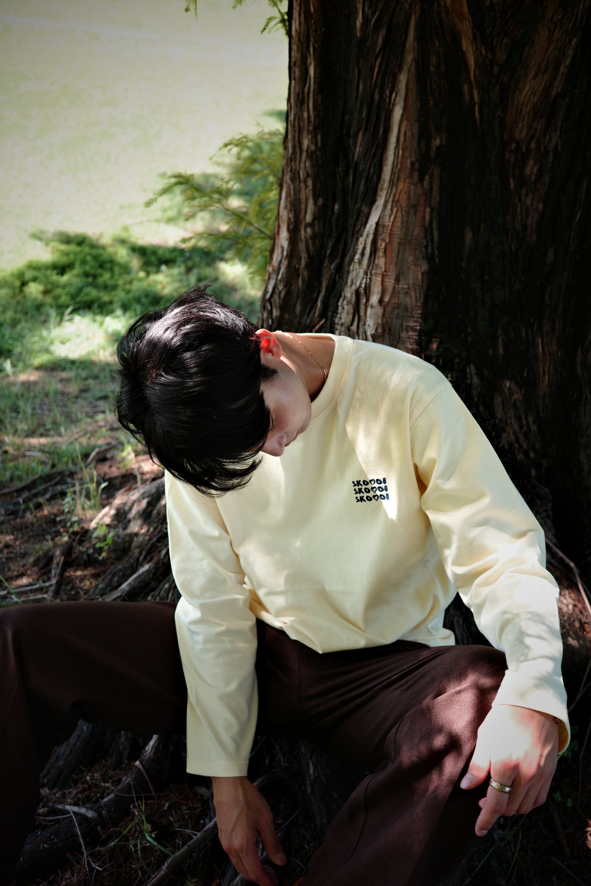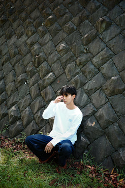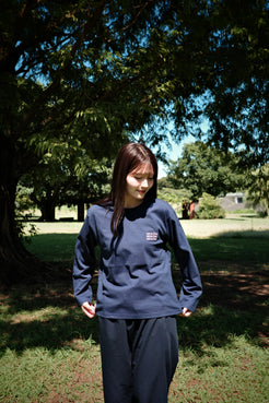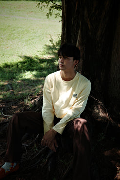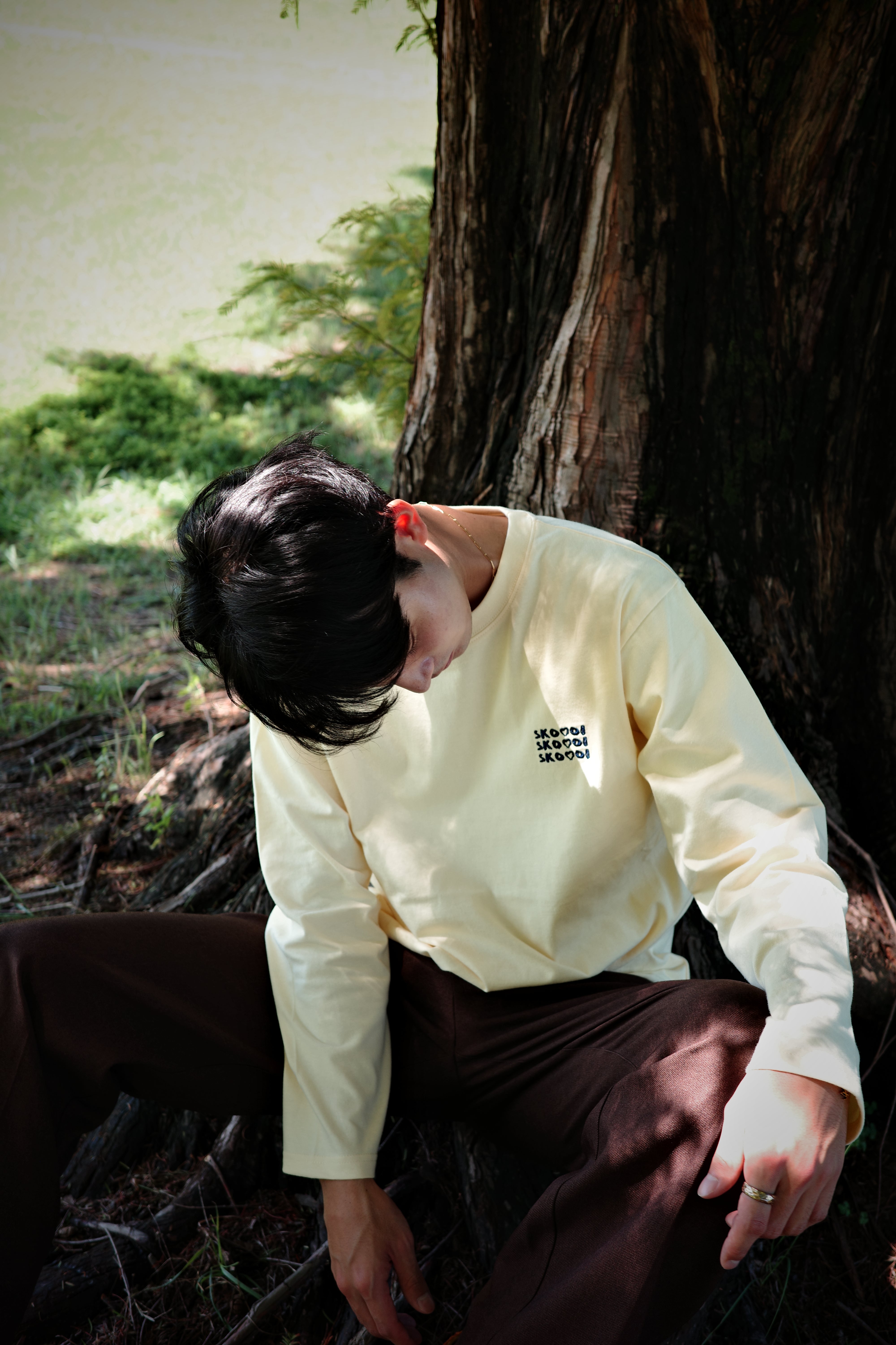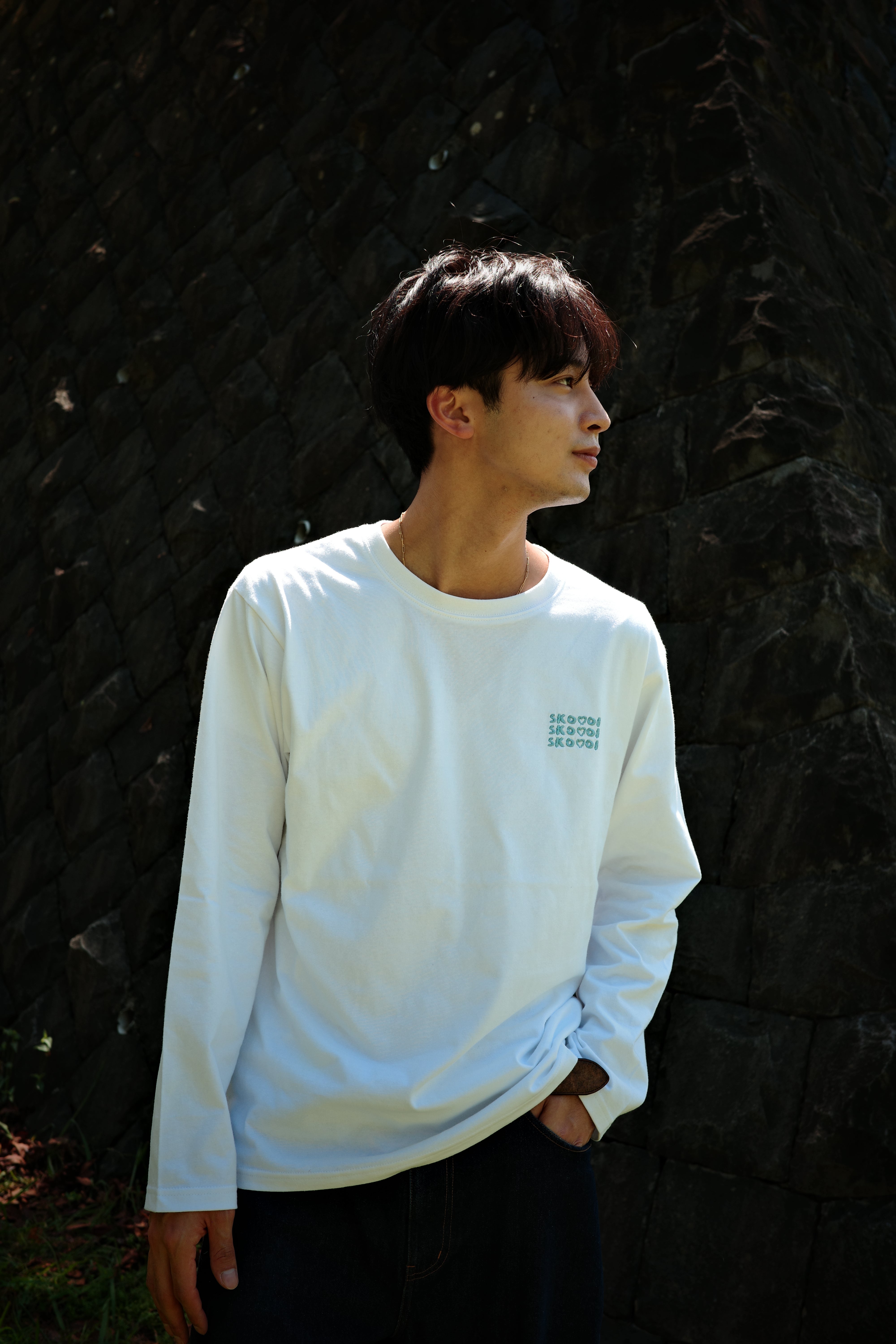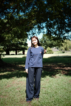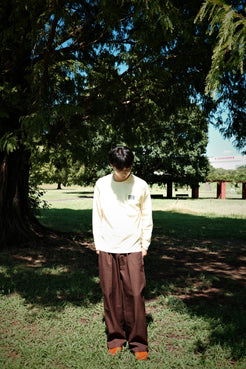 さらりとした質感で袖口のリブを無くすことで綺麗な落ち感が出る仕様になっている。