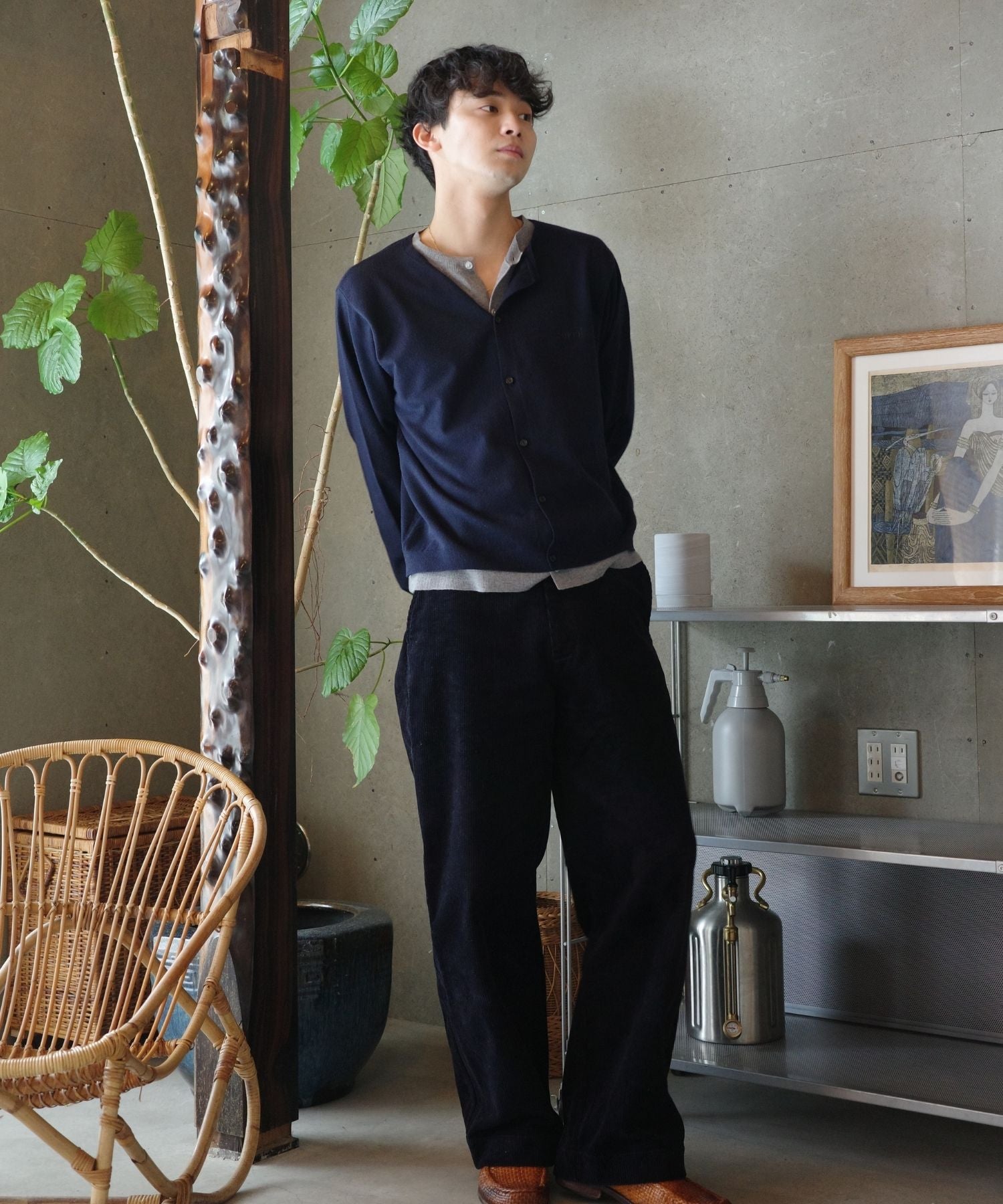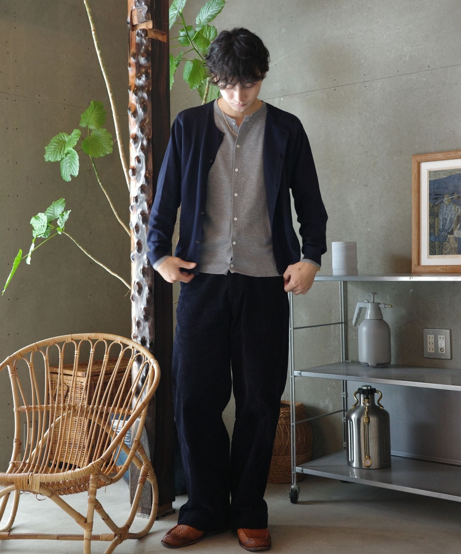軽くて暖かい上質な着心地のベーシックカーディガン。 レイヤードされたデザイン