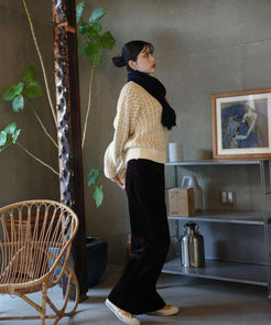 ・素材の特性上、摩擦により毛羽立ち毛玉(ピリング)が発生する場合があります。 毛羽立ちはブラシで軽く整え、毛玉を気にする際は引っ張らず小ハサミなどでカットしてください。・剤及び蛍光増白剤入りの洗剤のご使用はお避けください。・濡れたまま放置すると色落ちする場合がありますので、形を整えて干してください。